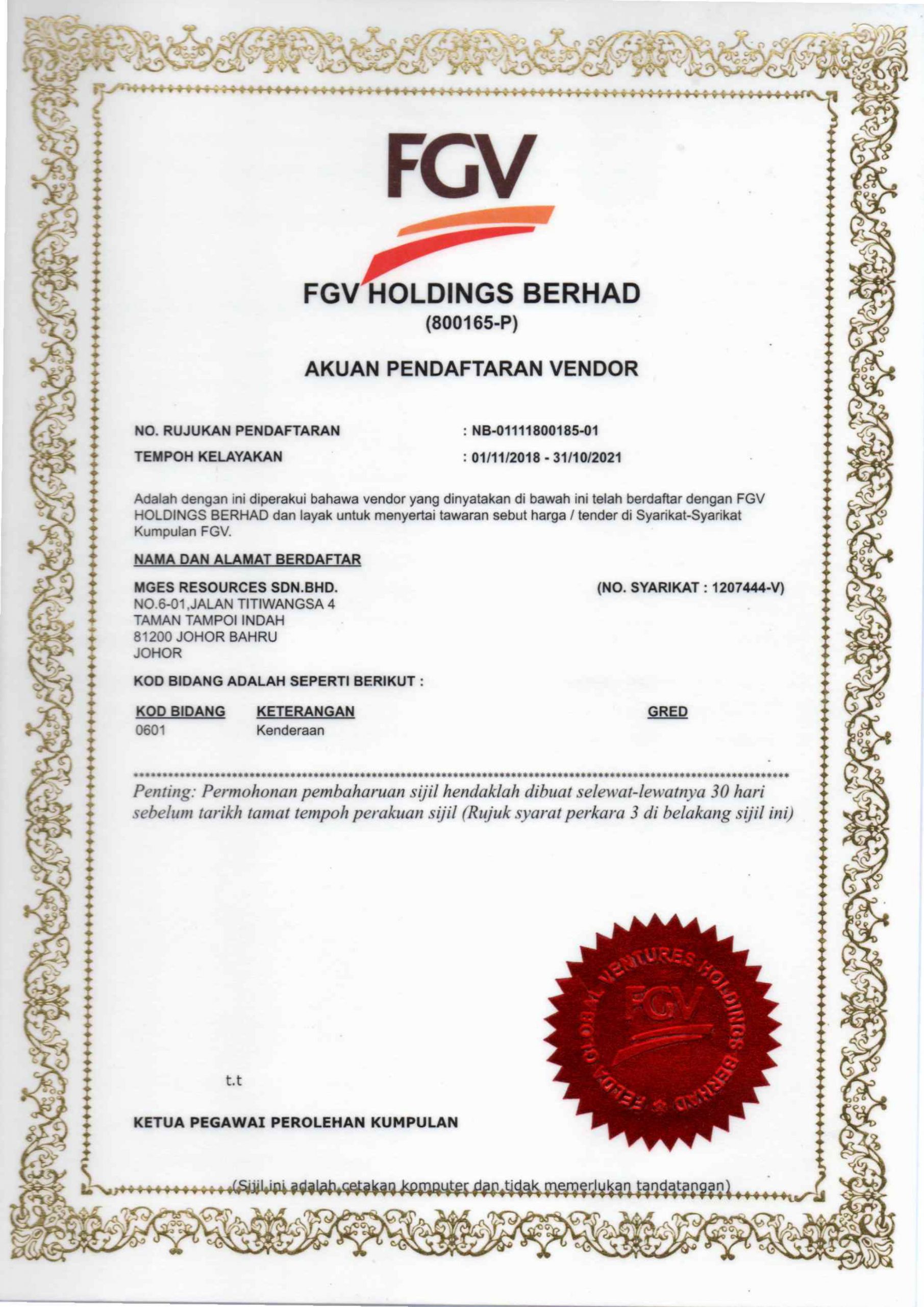Certification OUR CERTIFICATION Contact Us Name Email Address Message Send Message FollowFollowFollow Ptd 10663, Jalan Seroja, Bandar Indahpura 81000 Kulai, Johor +6017 611 2698 / +6012 721 2698 operations@mgesgroup.com.my